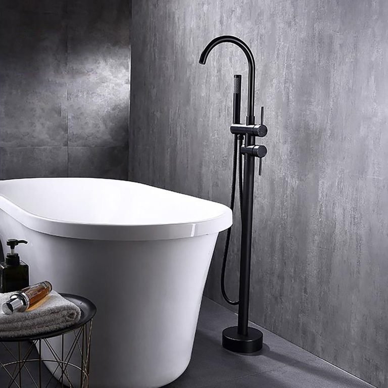Square Curve Freestanding Silver Chrome Plated Bath Tap With Shower
