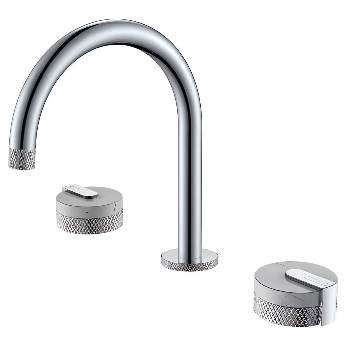 Shelf Mounted Silver Chrome Curved Tap With Double Marble Handles