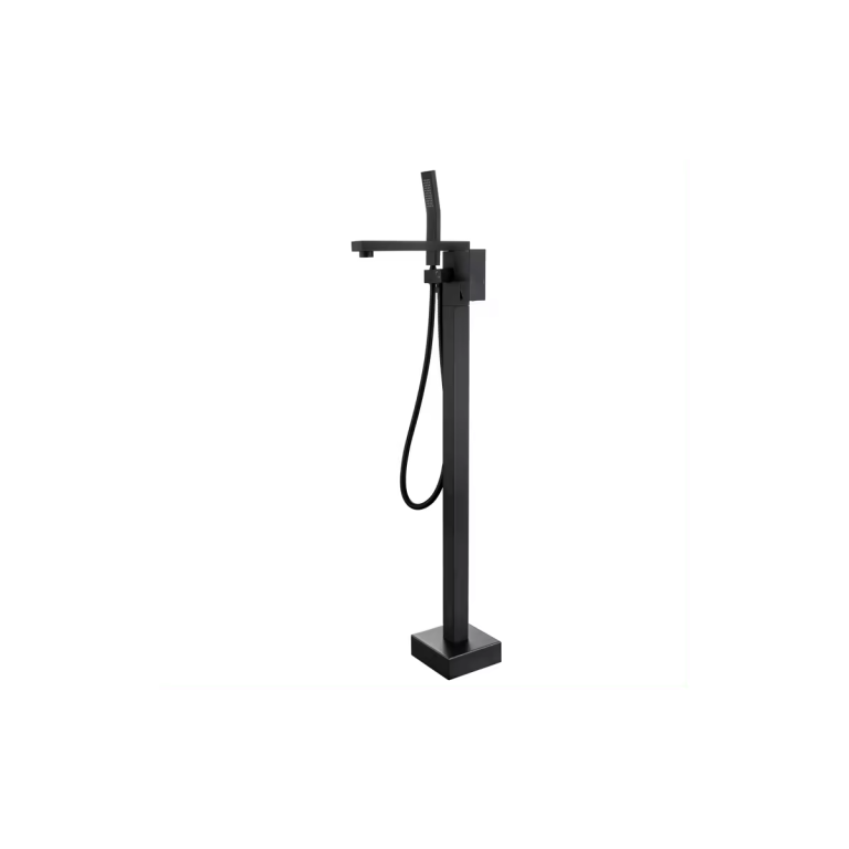 Square Curve Freestanding Matt Black Bath Tap With Shower