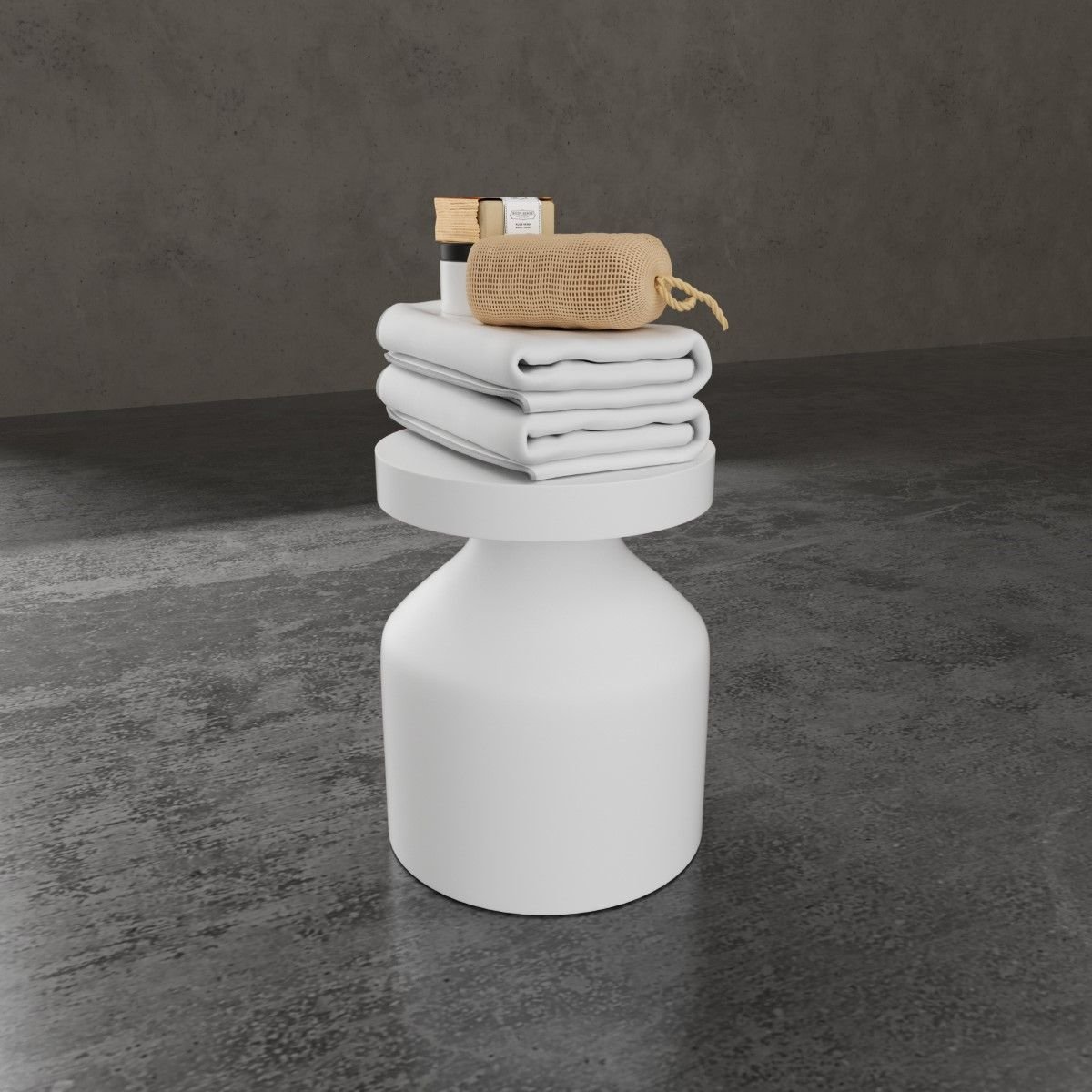 Matt White Stone Freestanding Bath Shelf With Towel Rail