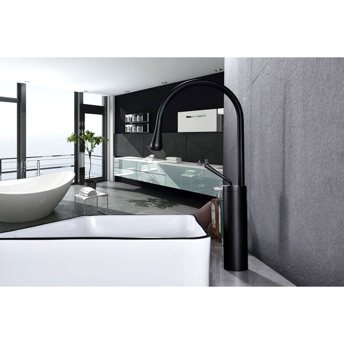Square Curve Freestanding Matt Black Bath Tap With Shower