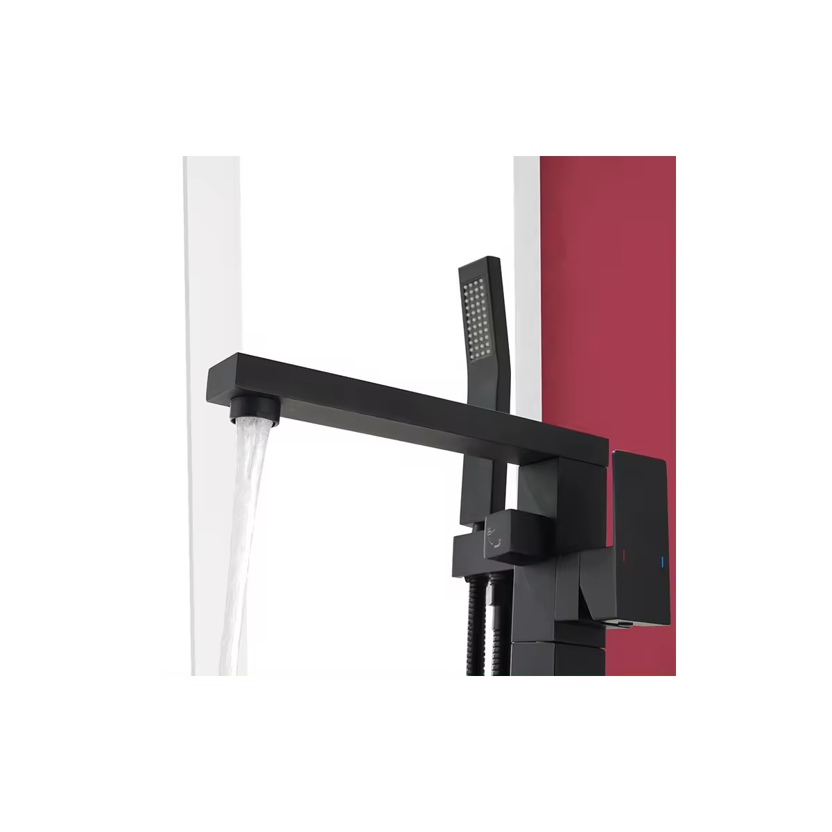 Waterfall Freestanding Matt Black Bath Tap With Shower