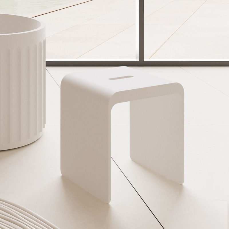 Allue Matt White Stone With Solid Oak Wood Bathroom Seat