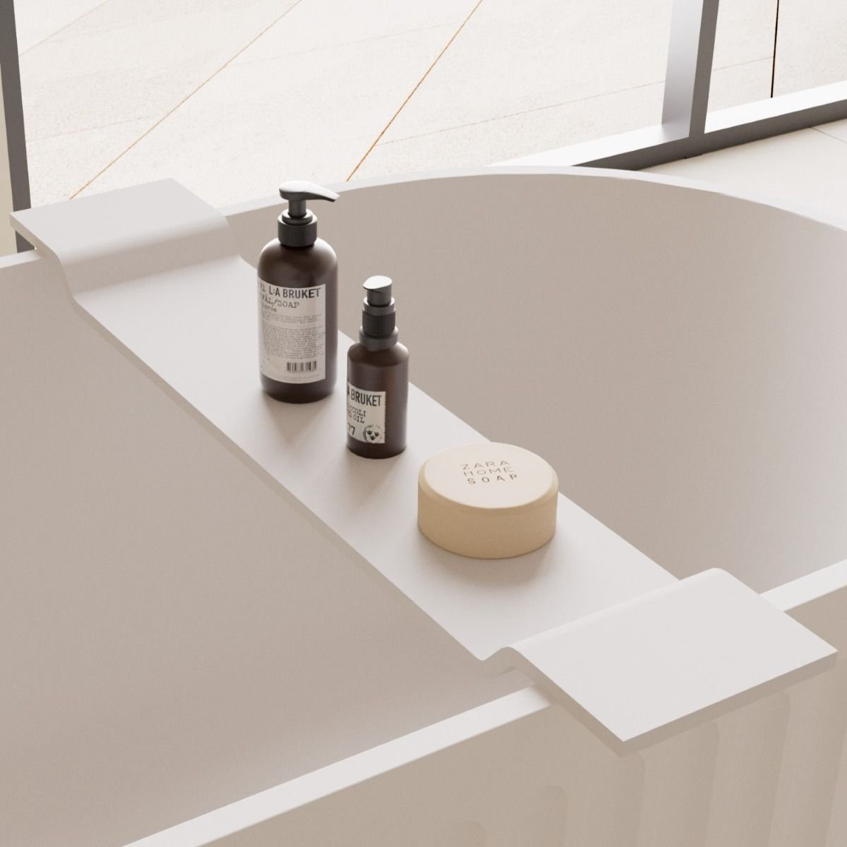 Matt White Stone Freestanding Bath Shelf With Towel Rail