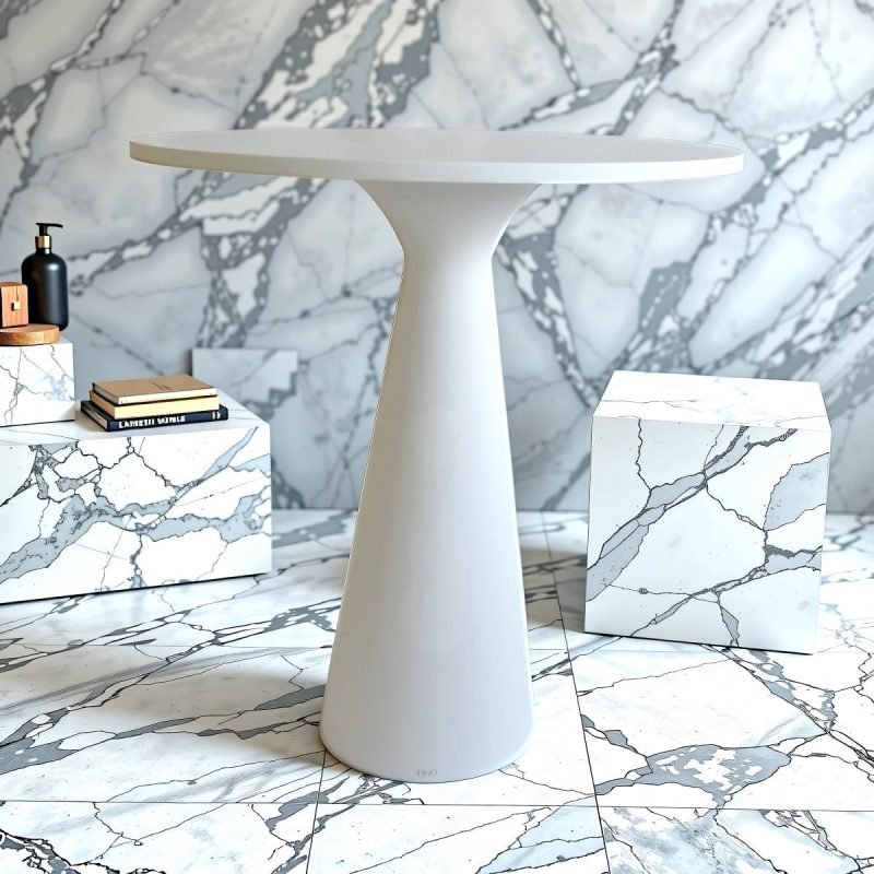 Conico White Solid Stone Contemporary Bathroom Table 700mm