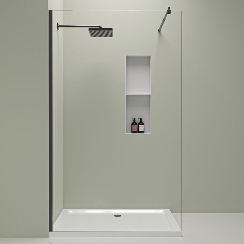 Valeria 8mm Glass Walk In Shower Screen With Black Frame – Various Sizes