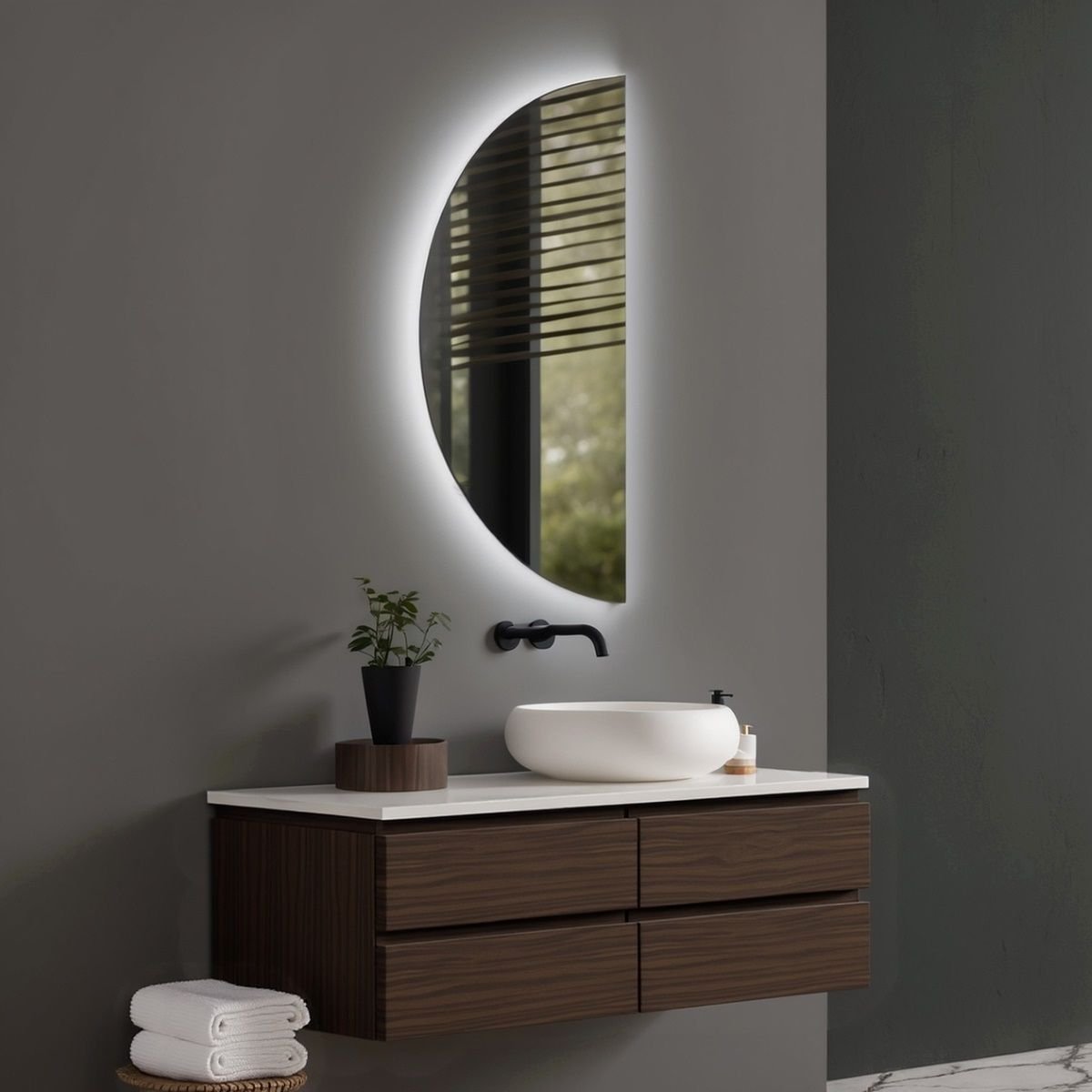 Setenil Half Moon Heated Anti-Fog LED Bathroom Mirror 60x120cm