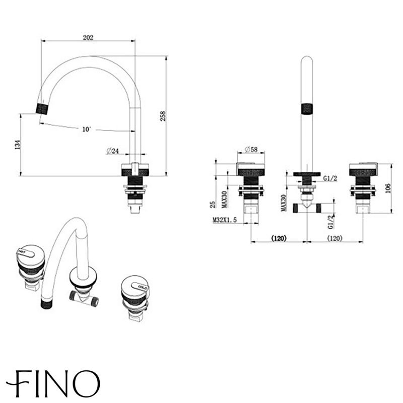 Shelf Mounted Silver Chrome Curved Tap With Double Marble Handles