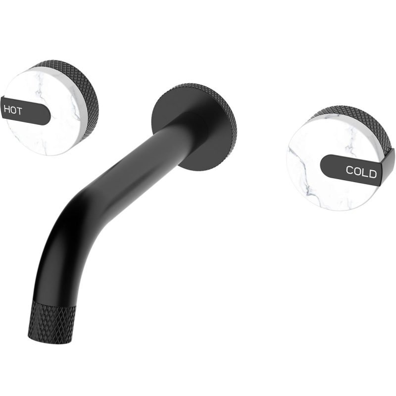 Wall Mounted Black Tap With Double Marble Handles