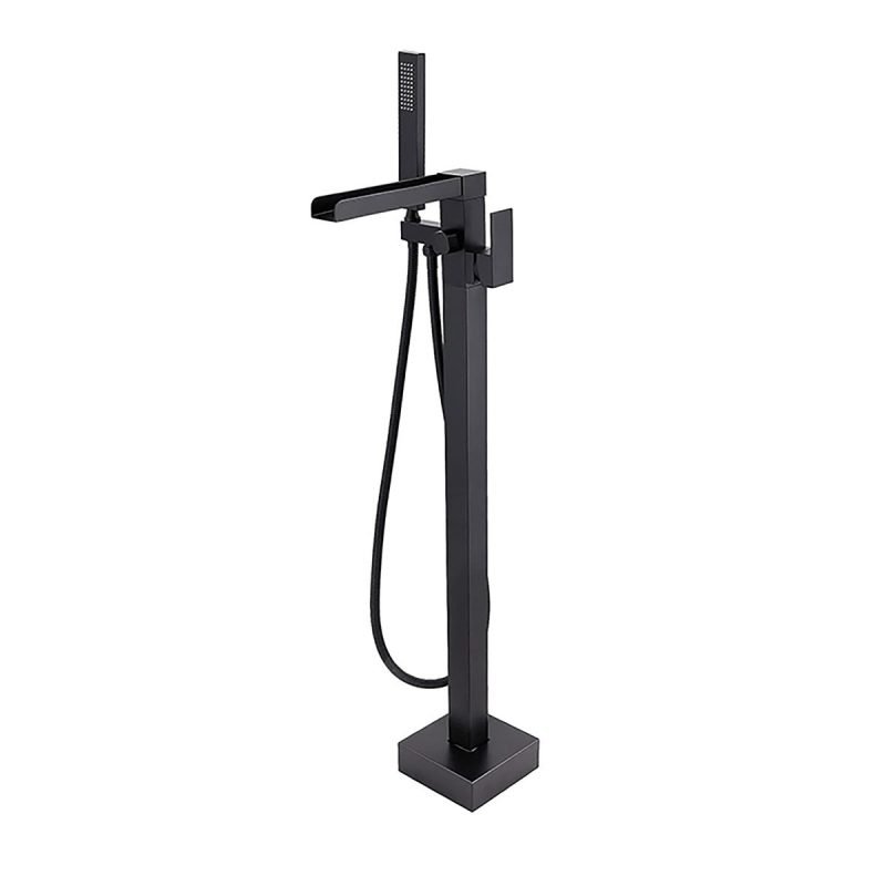 Waterfall Freestanding Matt Black Bath Tap With Shower