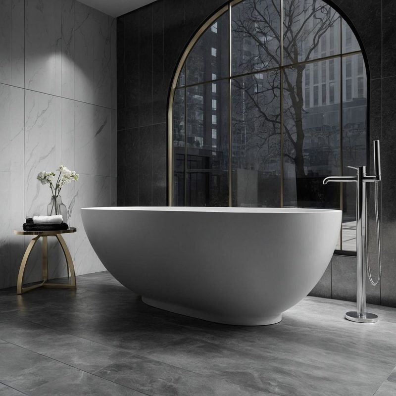Barcena Matt White Freestanding Stone Bath 1870mm