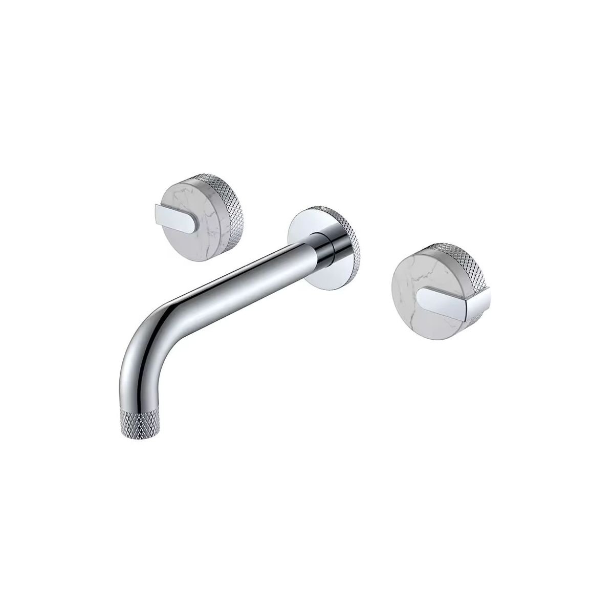 Wall Mounted Silver Chrome Tap With Double Marble Handles