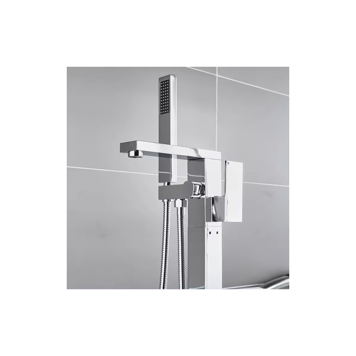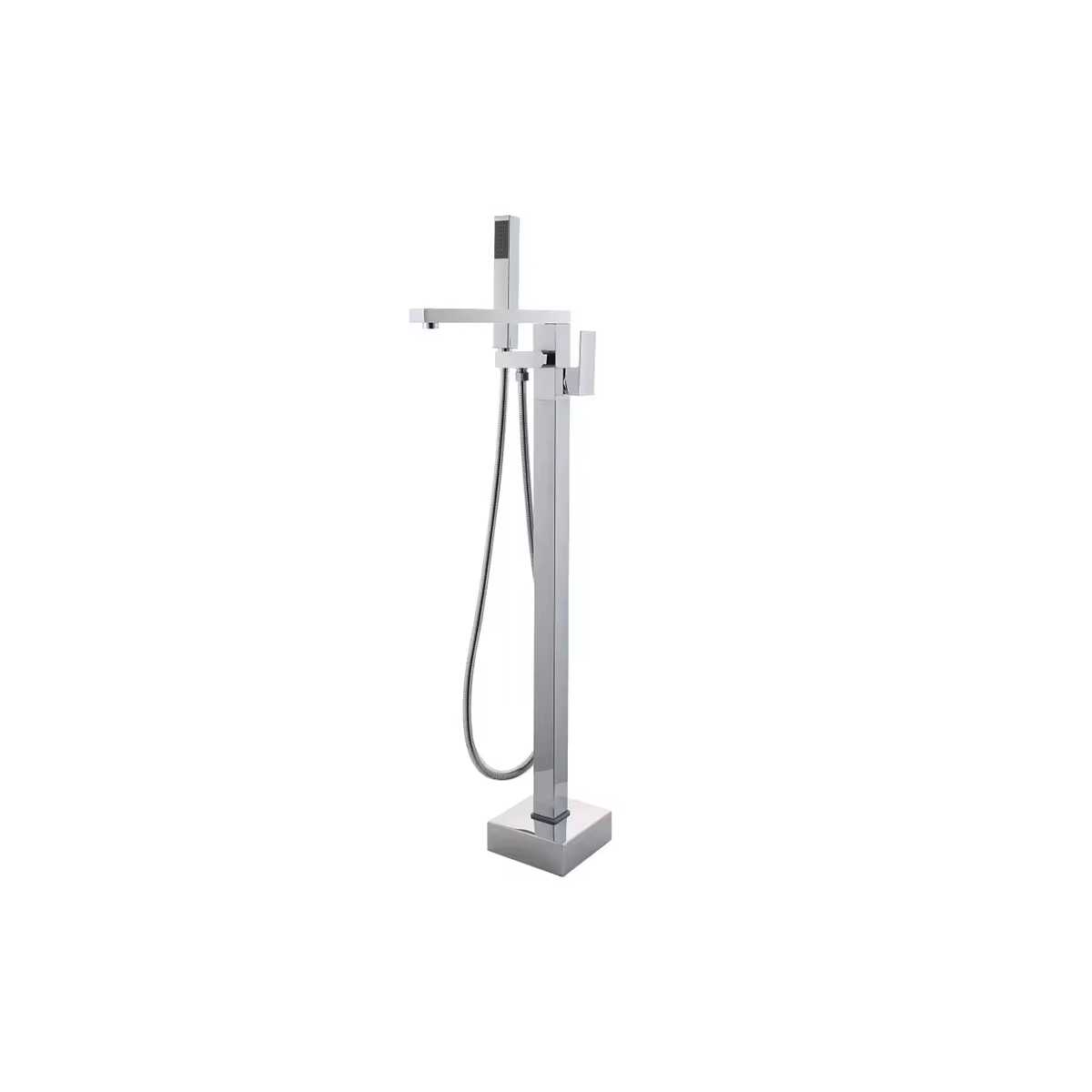 Straight Freestanding Silver Chrome Plated Bath Tap With Shower