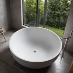 If you are looking for a real statement piece to give a bathroom the ultimate wow factor then you have found it with the Fino Lorenzo freestanding round bathtub. This unique modern bathtub is made from a solid single piece of stone material and only available in very limited quantities. It will give your house a magazine worthy designer bathroom. Not to be confused with acrylic baths, this is a highest quality handmade luxury bath with a contemporary real matt white finish that can only be truly achieved with a solid surface material. The Lorenzo round shape is so striking and allows people to bath together. Not only does the stone material look and feel better than a standard acrylic bath, it is also functional keeping the water warmer for longer for the ultimate bathing experience. This bath measures 1500mm by 1500mm, weighs 231kg, has a water capacity of 526 litres and comes complete with a silver drain cover.