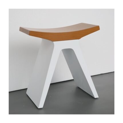 Allue Matt White Stone With Solid Oak Wood Bathroom Seat