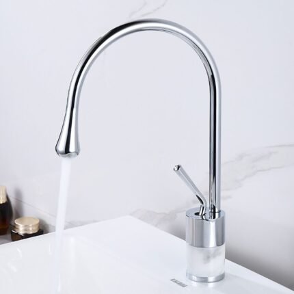Medium Body Silver Bathroom Basin Faucet With Marble