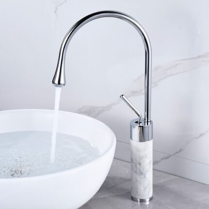 Tall Body Silver Bathroom Basin Faucet With Marble