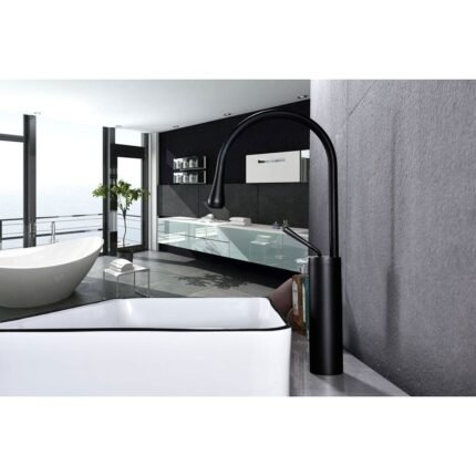 Be the first to review “Shelf Mounted Black Curved Tap With Double Marble Handles” Cancel reply