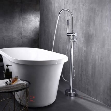 Round Freestanding Silver Chrome Plated Bath Tap With Shower